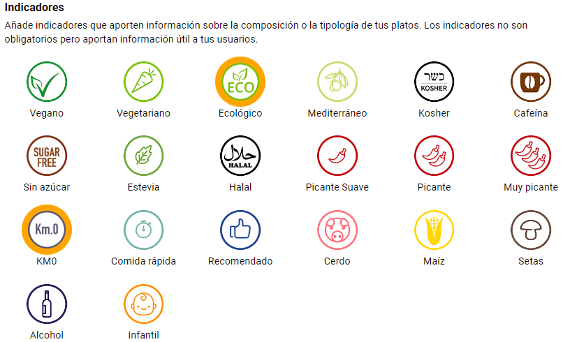En caso de que no hayas introducido previamente el escandallo, aún puedes agregar manualmente los alérgenos e indicadores para proporcionar información adicional sobre el plato a tus clientes.