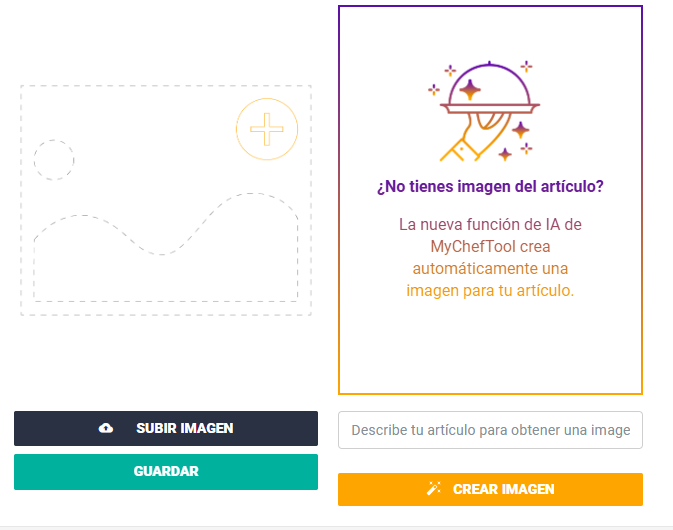 En la ficha del plato, encontrarás la opción para subir una fotografía. Haz clic en "editar" para poder subir la imagen o crearla con inteligencia artificial