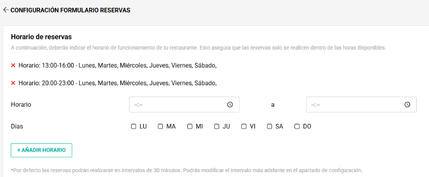 - Configura el horario en el que deseas aceptar reservas, asegurándote de que las reservas se realicen únicamente dentro de las horas disponibles.