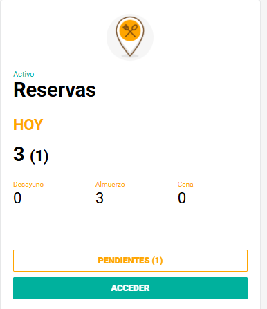 Encontrarás el número de comensales en grande y el número de reservas en paréntesis. También puedes obtener un resumen por franjas horarias: Desayuno, Almuerzo y Cena, así podrás distinguir unas de otras. Además, puedes ver cuantas reservas tienes pendientes por confirmar o denegar.