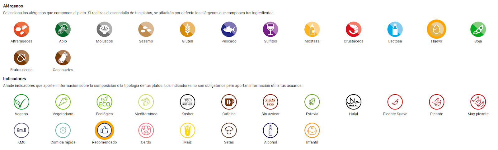 4. Selecciona los alérgenos e indicadores relevantes para el artículo y presiona “SIGUIENTE”.