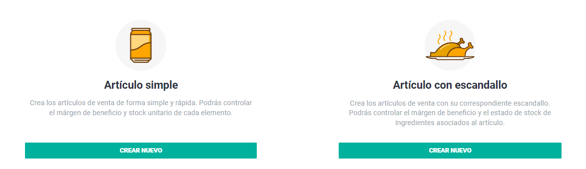 2. Selecciona la opción “ARTÍCULO CON ESCANDALLO” y luego elige “CREAR NUEVO”