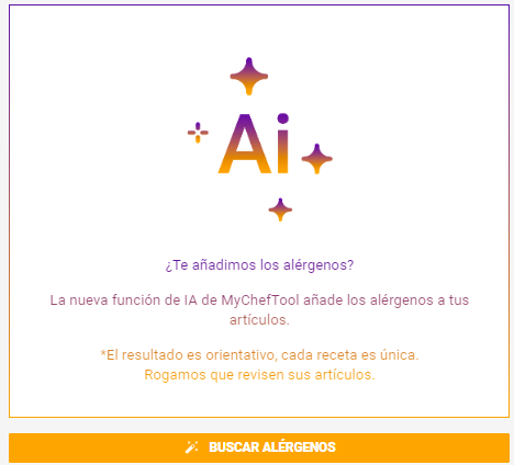 *Si desconoces los alérgenos que contiene el artículo, puedes hacer la detección automática con IA.