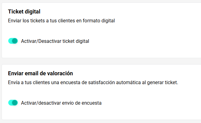 También puedes activar o desactivar la opción de enviar el ticket de forma digital a tus clientes. Recuerda que para que el ticket digital se envíe correctamente, debes asegurarte de tener la dirección de correo electrónico de tus clientes correctamente introducida en sus perfiles.