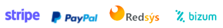Luego, elige el método de pago que desees habilitar, como Stripe, PayPal, Redsys o Bizum.