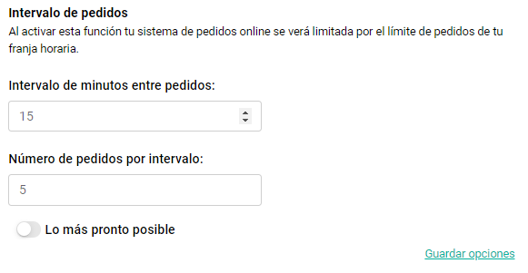 Imaginemos que estableces un intervalo de 15 minutos con un máximo de 5 pedidos. ¿Qué significa esto? Significa que durante un intervalo de 15 minutos, solo se permitirá un máximo de 5 pedidos. Esto es ideal para evitar la saturación en la cocina y mantener un control sobre los pedidos entrantes.