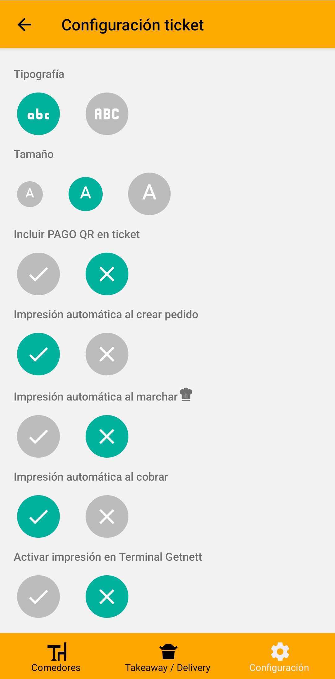 - Activa el botón Impresión automática al crear pedido. Esta función sirve para una vez hemos efectuado la comanda, nos imprima todo lo que tiene que preparar el cocinero.
