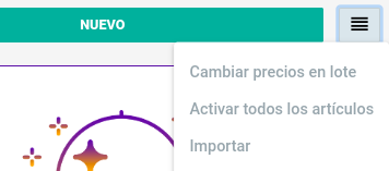 En la parte superior derecha de la sección “Artículos”, encontrarás un menú desplegable. Haz clic en él y selecciona la opción “IMPORTAR”.