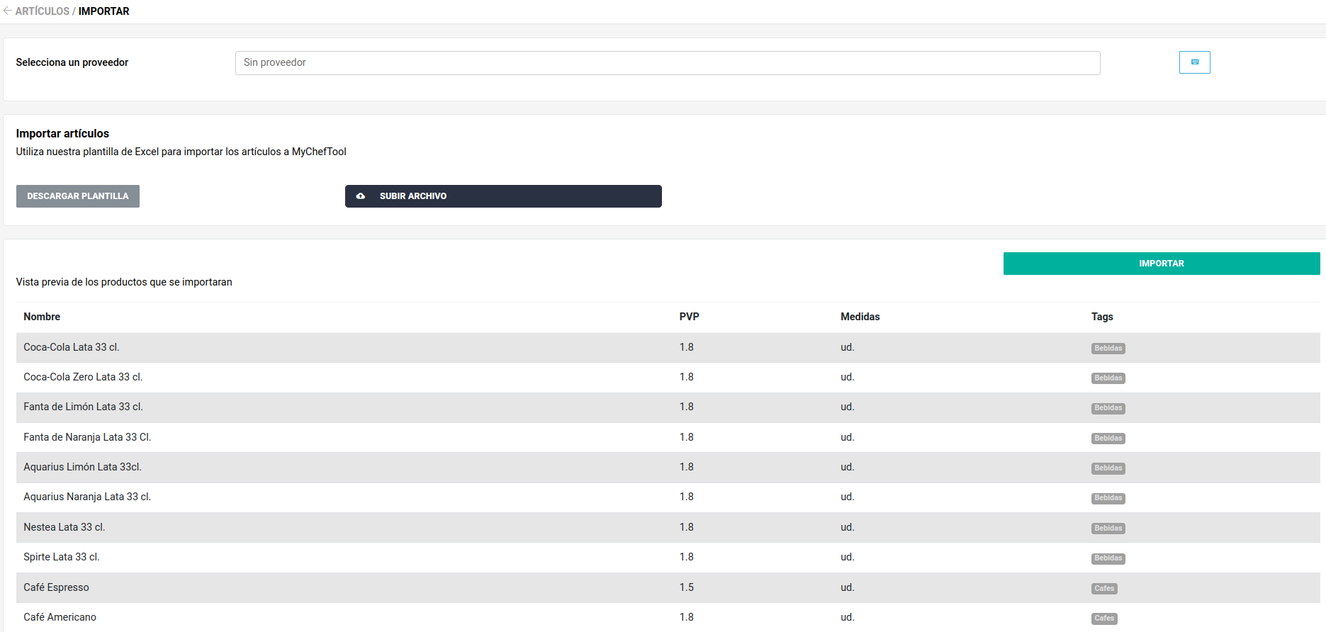 La introducción masiva de artículos en MyChefTool te permite ahorrar tiempo y esfuerzo al agregar la cantidad total de artículos de forma automática. Para realizarlo sigue estos pasos: