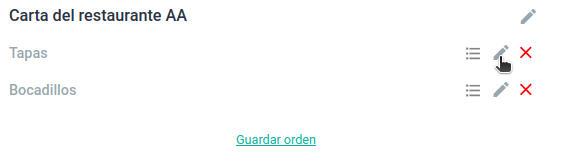 2. Seleccione en menú y carta, y selecciona la que desea editar:
