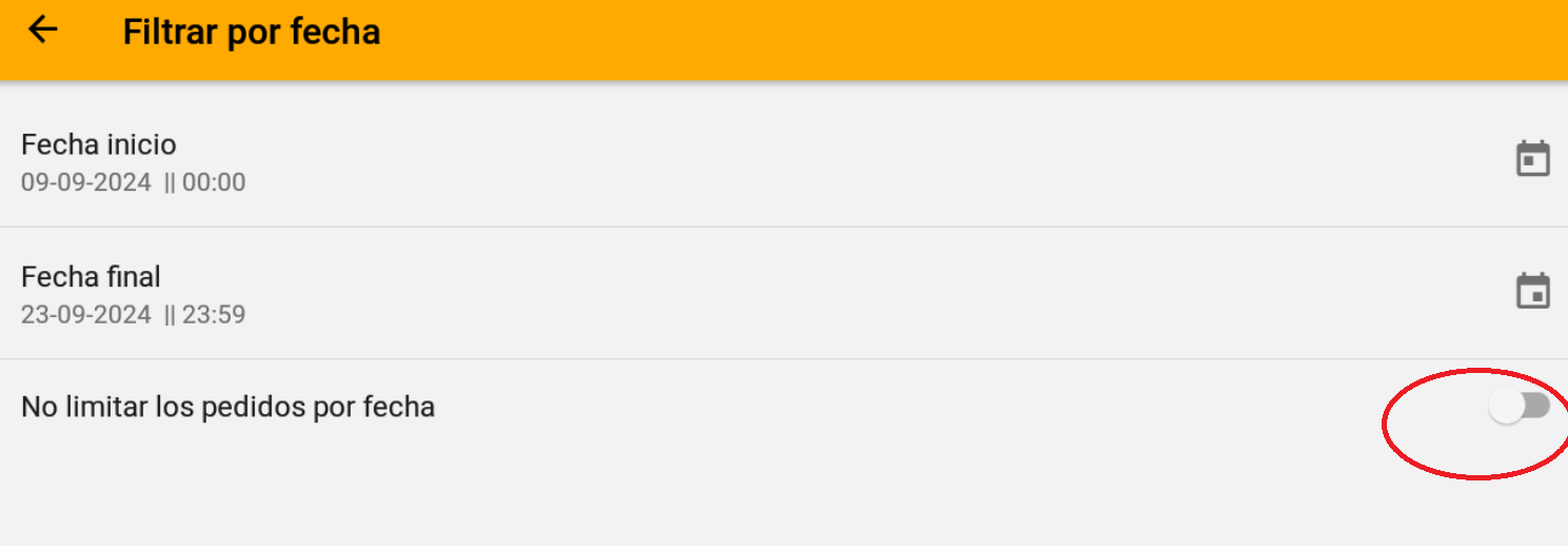 Desde la opción Calendario, selecciona la opción "No limitar los pedidos por fecha" para asegurarte de que todos los pedidos sean visibles.