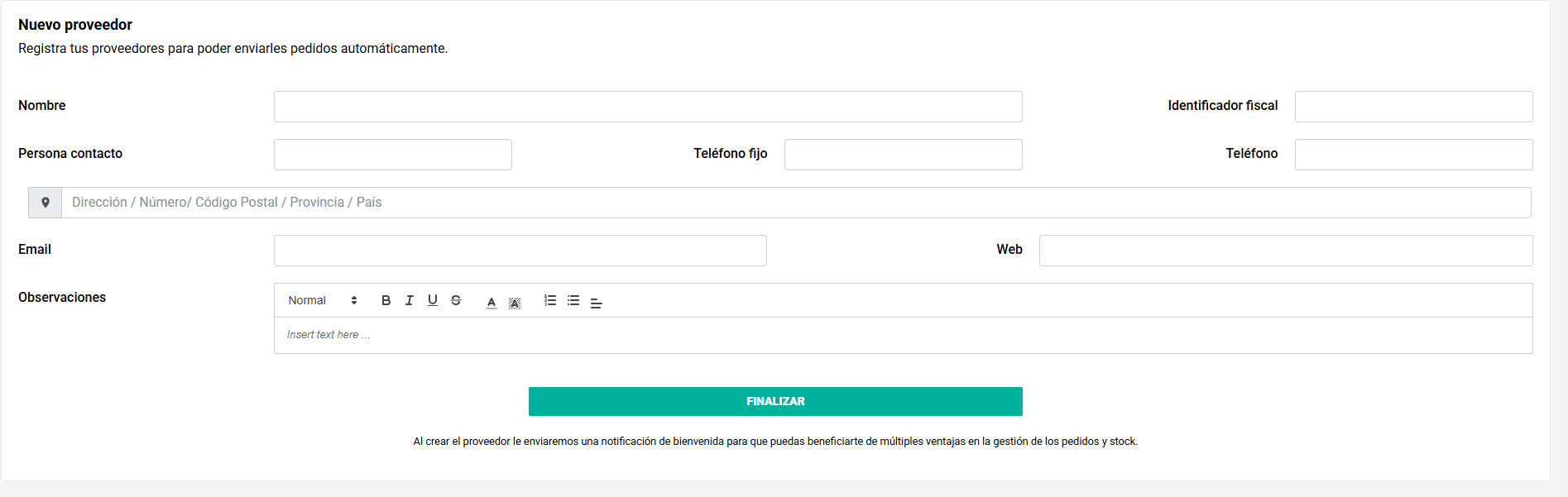 *Si no dispones del tiempo, nuestro equipo técnico se encargará de realizar toda la carga de proveedores y productos en el sistema.