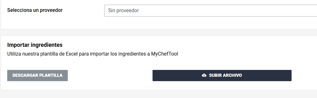 - Haz clic en “IMPORTAR” y selecciona el proveedor al que estarán asociados los ingredientes.