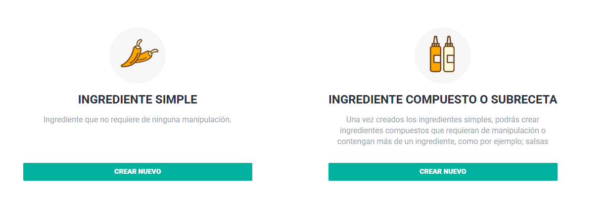 - Elige entre Ingrediente simple o Ingrediente compuesto.