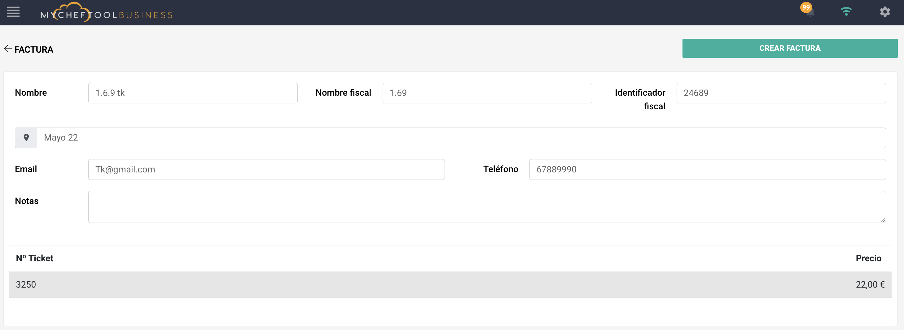 Desde MCT POS puedes pulsar en el botón Guardar ticket a cliente cuando haces una venta. Esto no genera automáticamente una factura, pero asocia la venta al cliente para facturarla después.