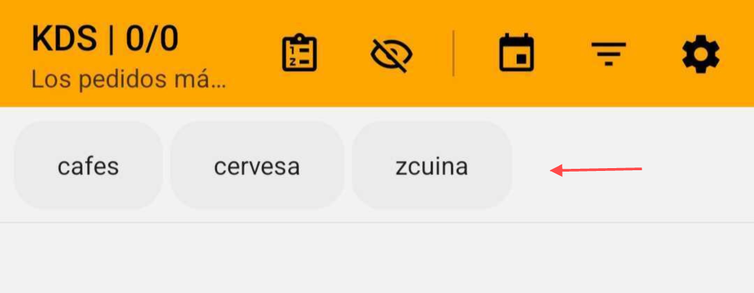 Una vez seleccionada, el KDS mostrará únicamente los platos asignados a esa categoría, que deben mostrarse por pantalla.